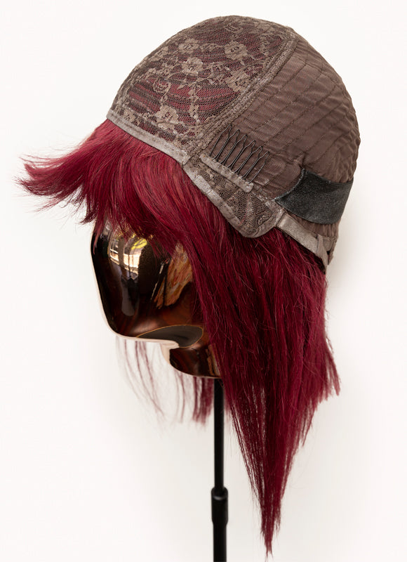 Full lace wigs are made from a lace cap that covers the entire head. Each piece of hair is knitted into the cap by hand, which allows for the hair to be parted at any angle.