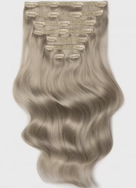 Add instant length, volume, and glamour with our premium 16 inch Full Volume Clip-In Hair Extensions in Silver. Crafted from 100% Remy human hair, these extensions are soft, silky, and blend beautifully with your natural hair for a flawless finish.