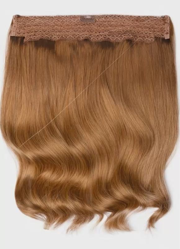 The one piece Halo-style hair extension is designed for quick and easy application — taking about 30 seconds to slip on. Its adjustable, invisible wire ensures a secure fit for any head size, providing the equivalent of a full head of hair. The wire sits comfortably on your crown, hidden beneath your natural hair, making it perfect for daily wear.