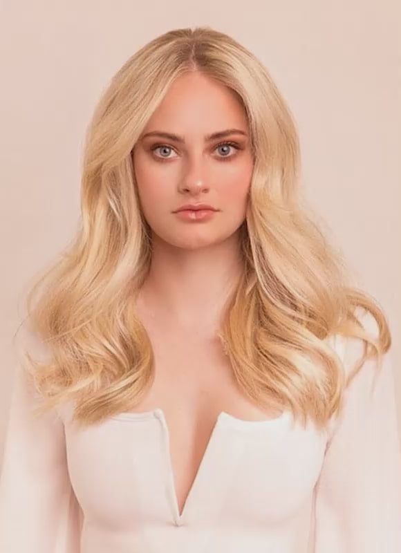 Indulge in the thickest, most luxurious hair extensions we offer — our 16 inch Ultimate Volume Clip-In Hair Extensions in Light Blonde. Crafted from double drawn, 100% cuticle-aligned Remy human hair, these premium extensions deliver exceptional thickness from top to ends, a soft, silky feel, and stunning, natural-looking volume.