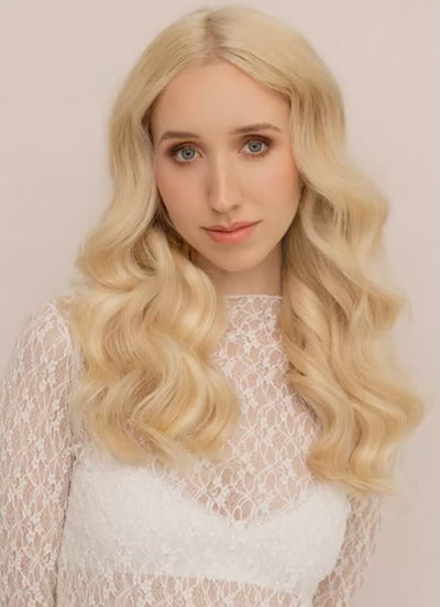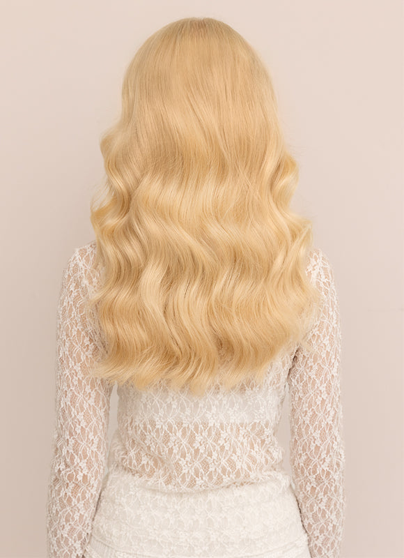 Indulge in the thickest, most luxurious hair extensions we offer — our 16 inch Ultimate Volume Clip-In Hair Extensions in Bleached Blonde. Crafted from double drawn, 100% cuticle-aligned Remy human hair, these premium extensions deliver exceptional thickness from top to ends, a soft, silky feel, and stunning, natural-looking volume.