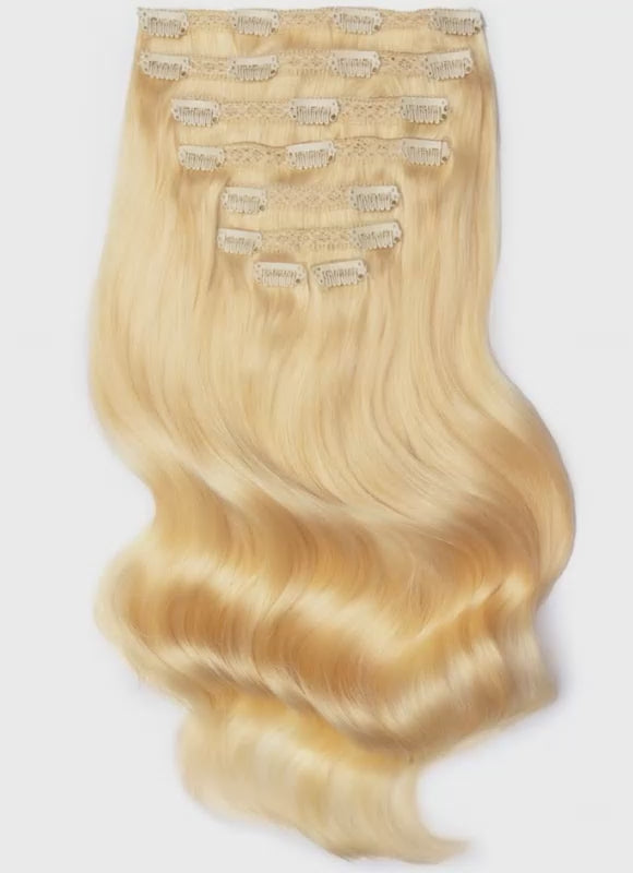 Take your look to the next level with our 20 inch Deluxe Clip-In Hair Extensions in Light Blonde. Crafted from the highest grade 100% genuine Remy human hair, these premium extensions provide luxurious length, volume, and a soft, silky finish that blends seamlessly with your natural hair.