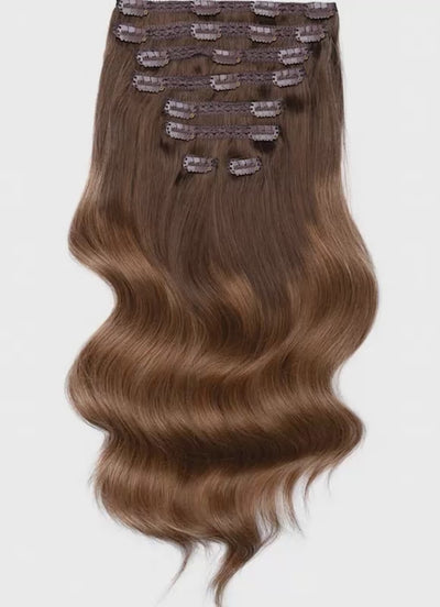 Add instant length, volume, and glamour with our premium 20 inch Full Volume Clip-In Hair Extensions in Dark to Light Brown Ombre. Crafted from 100% Remy human hair, these extensions are soft, silky, and blend beautifully with your natural hair for a flawless finish.