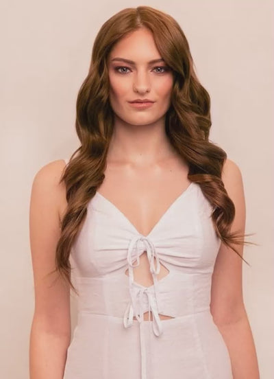 Our 20” Seamless Clip-In Hair Extensions in Medium Brown blend effortlessly for a flawless finish. Crafted with ultra-lightweight, invisible wefts, they lie flat against the scalp for a discreet and comfortable fit. Made from the highest grade 100% genuine Remy human hair, these extensions deliver silky softness, natural movement, and long-lasting wear. Each weft features premium metal clips lined with silicone for a secure, gentle hold that stays in place all day.