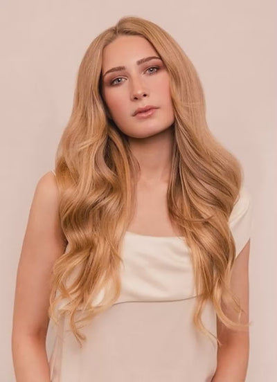 Indulge in the thickest, most luxurious hair extensions we offer — our 20 inch Ultimate Volume Clip-In Hair Extensions in Light Golden Blonde. Crafted from double drawn, 100% cuticle-aligned Remy human hair, these premium extensions deliver exceptional thickness from top to ends, a soft, silky feel, and stunning, natural-looking volume.