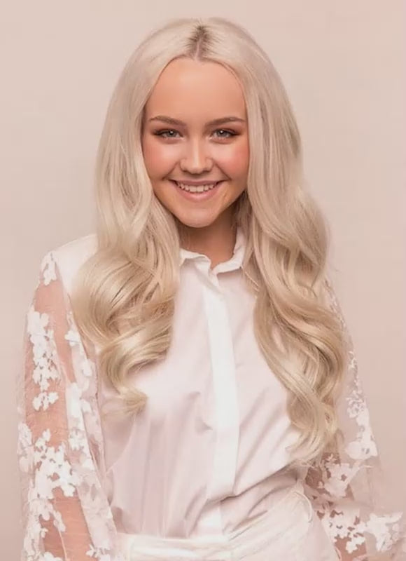 Cool, ashy undertones fuse together in this icy blonde colour. A bold, striking hue, this is the lightest shade we offer.