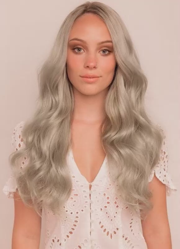Indulge in the thickest, most luxurious hair extensions we offer — our 20 inch Ultimate Volume Clip-In Hair Extensions in Silver. Crafted from double drawn, 100% cuticle-aligned Remy human hair, these premium extensions deliver exceptional thickness from top to ends, a soft, silky feel, and stunning, natural-looking volume.