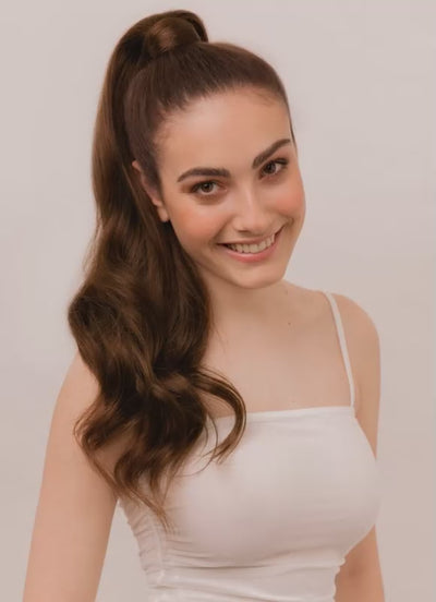 The clip and wrap-around design makes application quick and secure. Simply clip the extension over your natural ponytail and wrap the integrated strand of hair around the base for a seamless, polished finish.