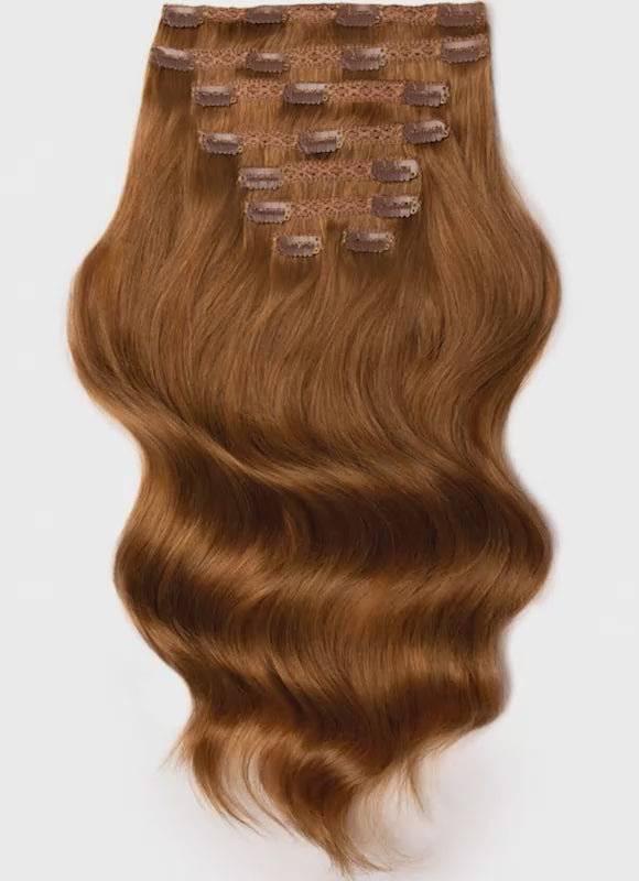 Take your look to the next level with our 24 inch Deluxe Clip-In Hair Extensions in Light Chestnut Brown. Crafted from the highest grade 100% genuine Remy human hair, these premium extensions provide luxurious length, volume, and a soft, silky finish that blends seamlessly with your natural hair.