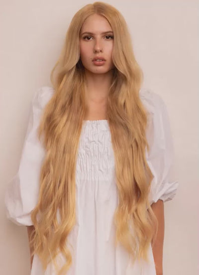 Experience unparalleled length and volume with our 30 inch Ultimate Volume Clip-In Hair Extensions in Light Golden Blonde. Crafted from the highest grade 100% Remy human hair, these extensions are double drawn and cuticle-aligned, ensuring thickness from root to tip and a silky, tangle-free finish.