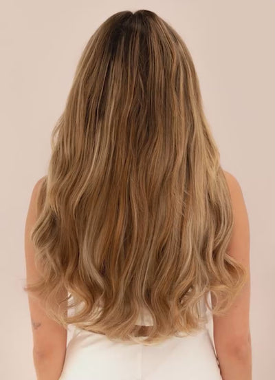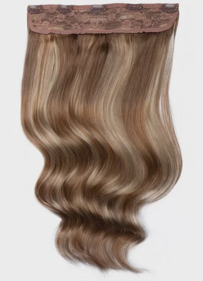 Want fuller, thicker hair in seconds? Our Clip-In One Piece Volumizer Hair Extensions in Brown & Blonde (Bronde) Balayage #F4A-4A8A613 are the perfect solution for adding instant volume and body — without the need for a full set of clip-in extensions.